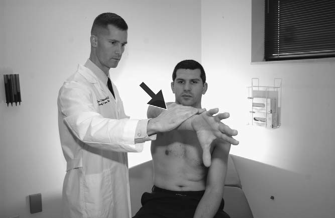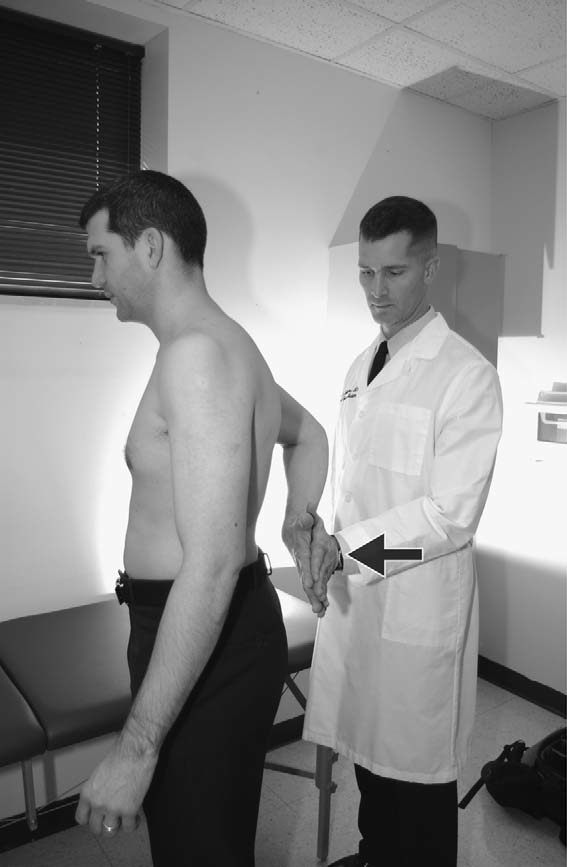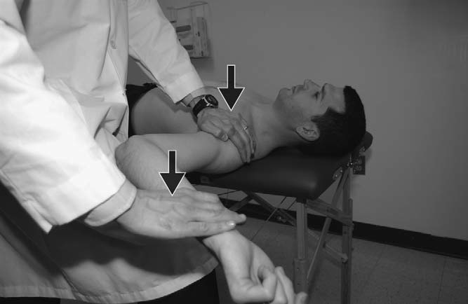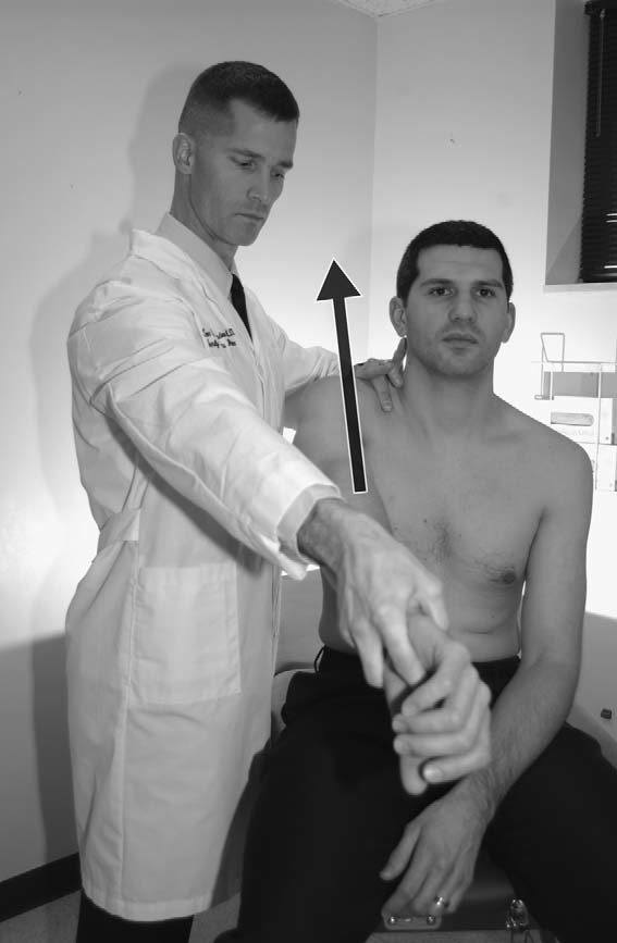 Figure 9.12 Crank test. After elevating the subject’s arm approximately
