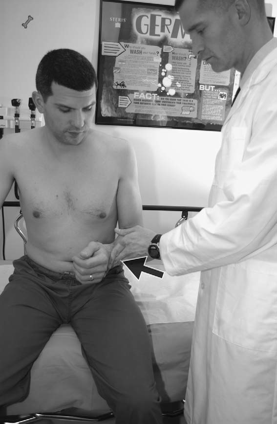 Figure 9.7 Subscapularis strength testing.The subject is asked to place